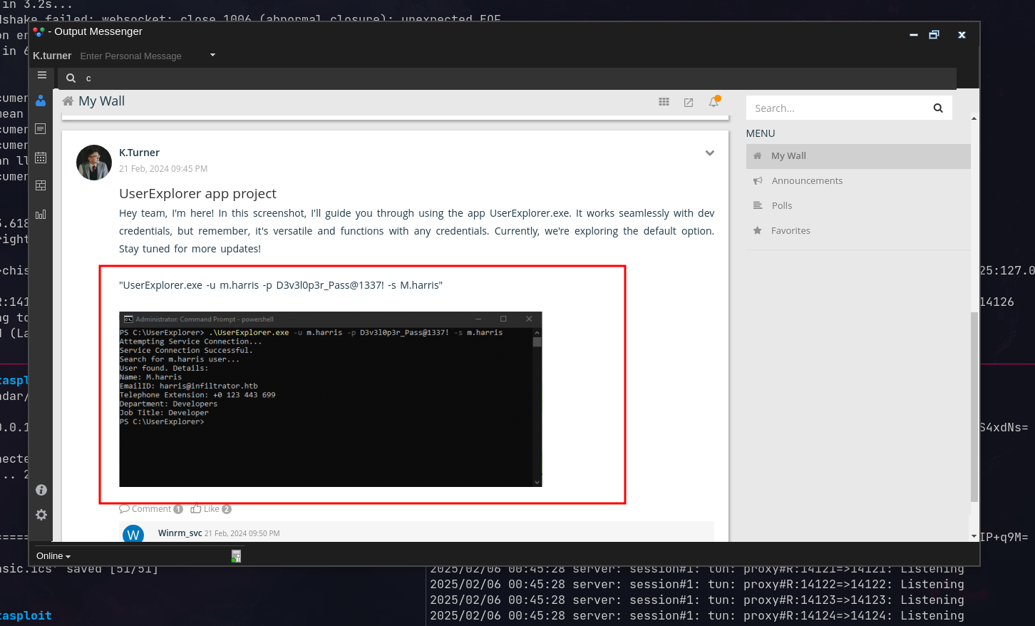 Found k.turner’s password: MessengerApp@Pass! - but it doesn’t work directly.