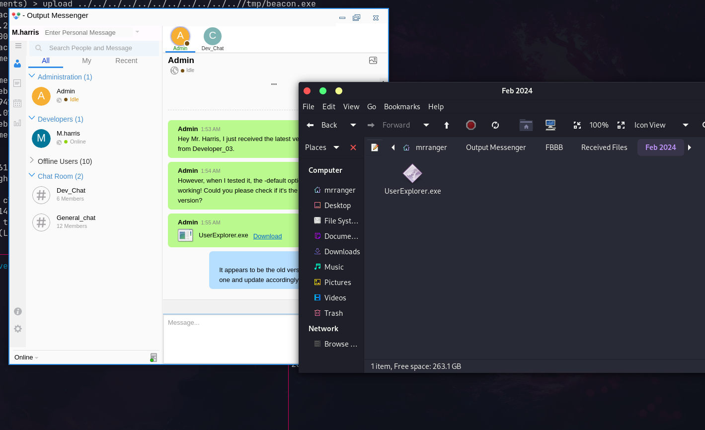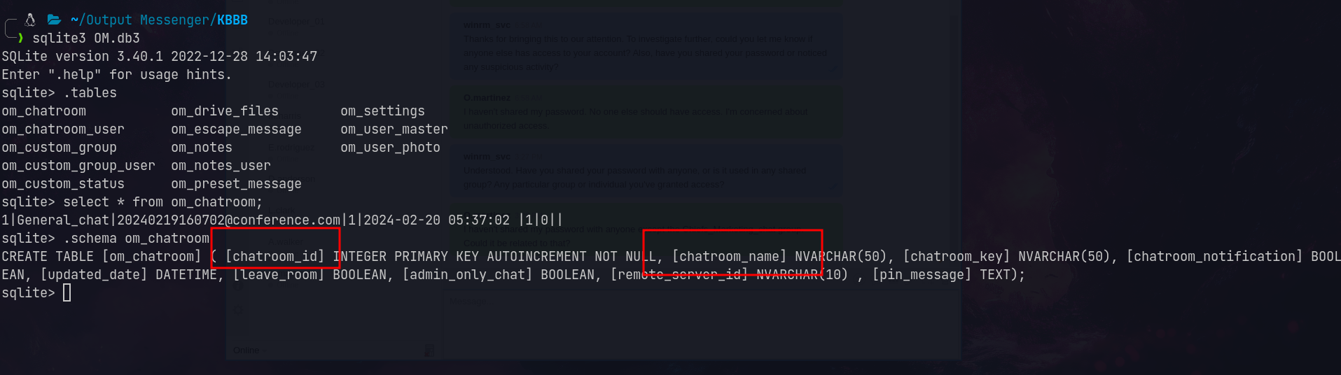 Extracting the database from winrm_svc’s Output Messenger folder: